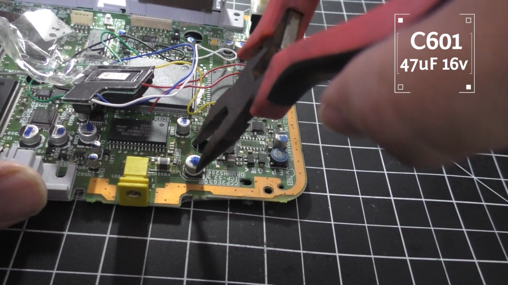 I continued until I finished all capacitors which were about 17. Then returned it to the shell and reassembled the console.