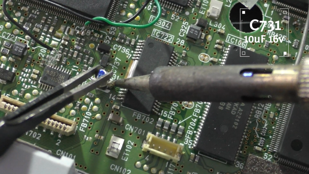 Then proceeded to capacitor C731 and used swinging method, and after that to capacitor C705 and used snipping method. Both explained in the guide.
