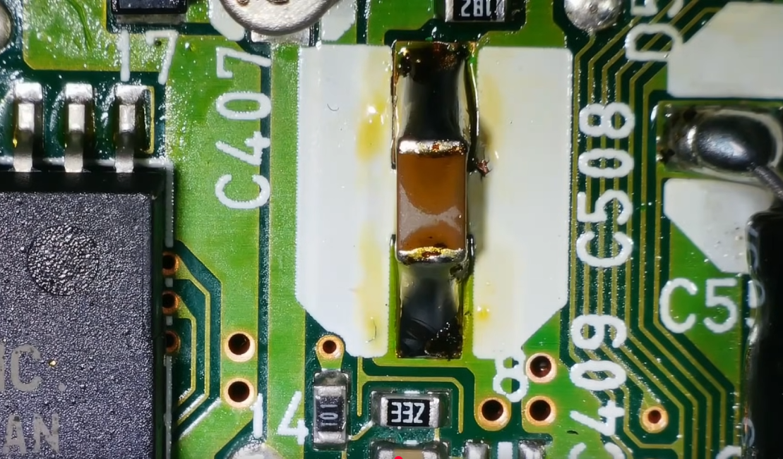 4- Dirty pad: when you desolder the cap, make sure you clean thoroughly before soldering a new cap. Some people do not do that, and it results in the corrosive liquid and dirty flux get combined with new solder which will damage the pad over time.